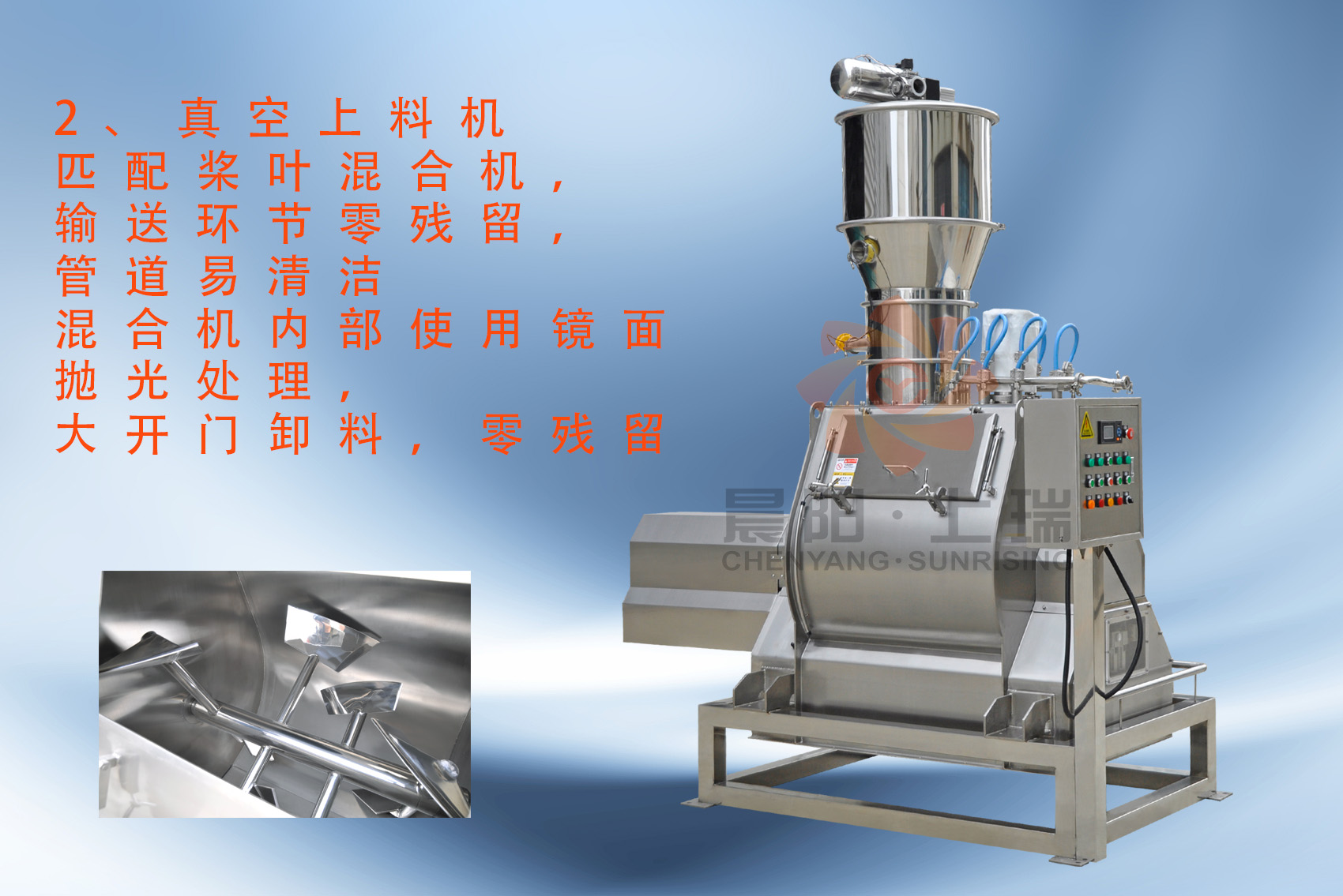 生產(chǎn)的配置自動(dòng)化流程較高,全程除投料外無人工介入,食品接觸全部304要求,無死角清潔。