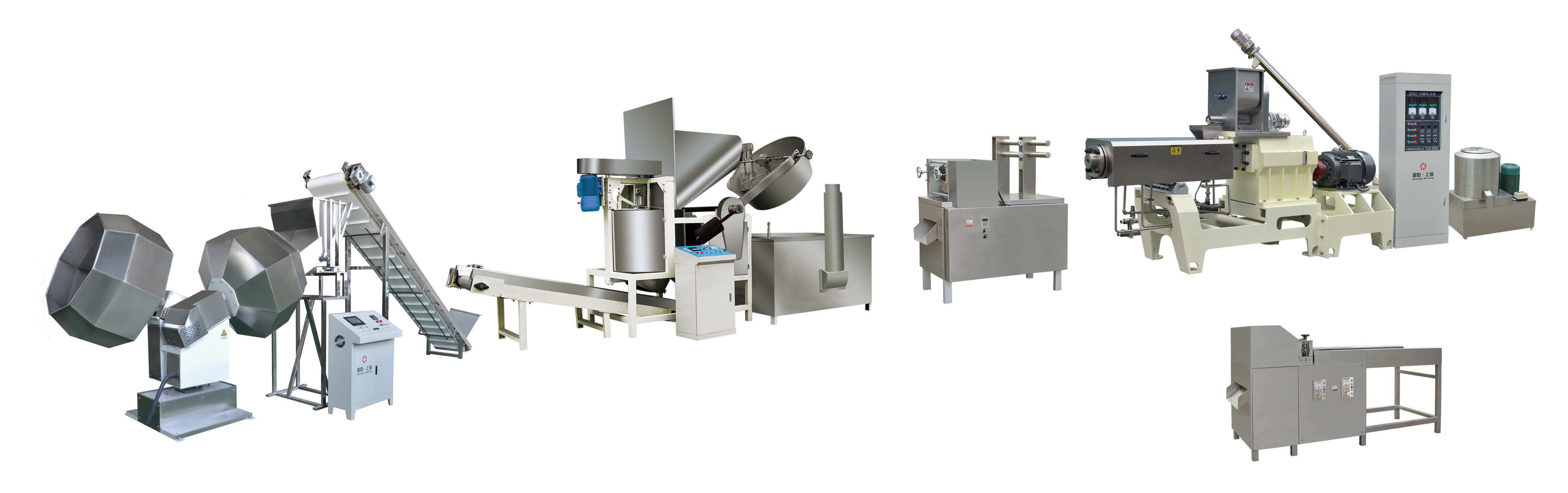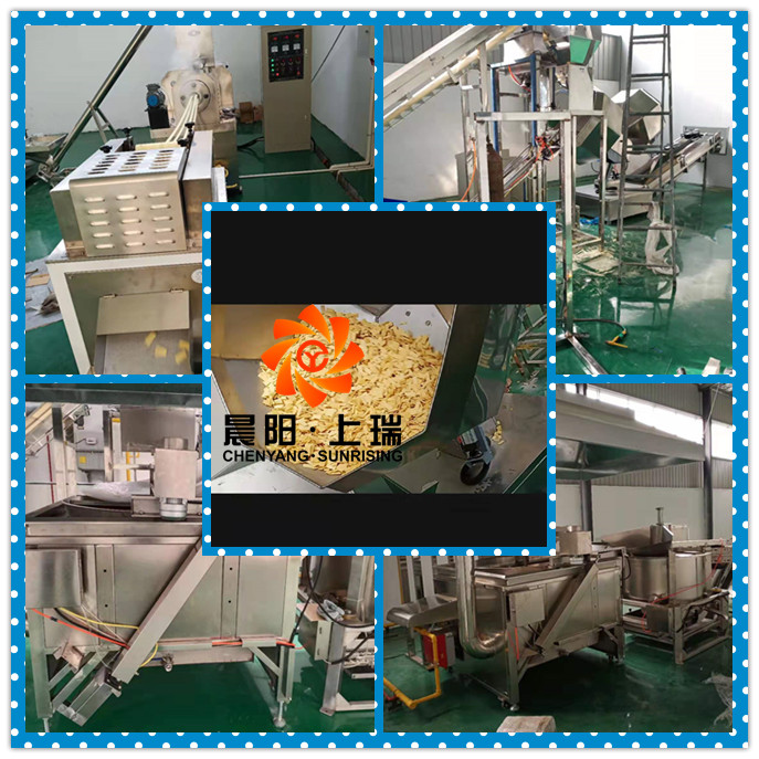 拌粉機-膨化機-切斷機-提升機-油炸機-自動調(diào)味線-冷卻線-包裝機
