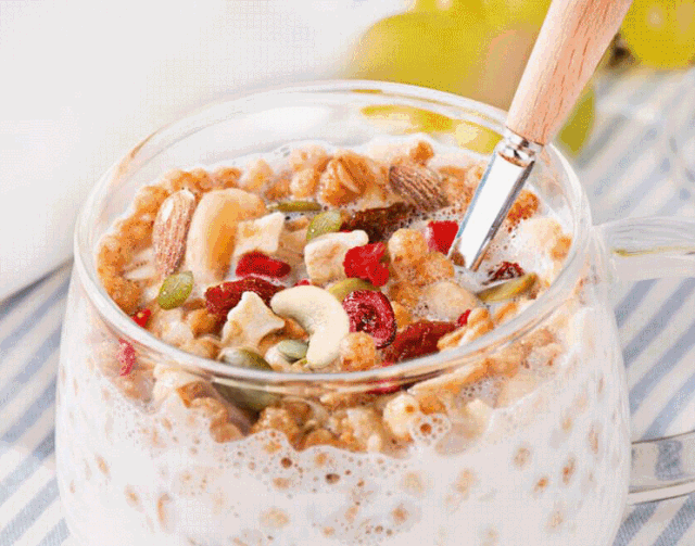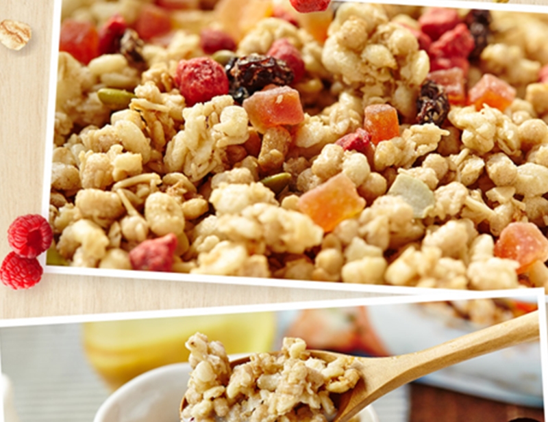 早餐水果麥片選用燕麥,再加上膨化谷物脆經(jīng)過(guò)混合噴涂低溫烘培后,混合果干、堅(jiān)果等產(chǎn)品,富含膳食纖維和維生素,是營(yíng)養(yǎng)豐富的早餐選擇。既可以直接干吃,使口感酥脆可口。也可配上牛奶和酸奶,口感會(huì)更加,吃起來(lái)酸甜酥脆,倒入直接拌勻即可吃,無(wú)需等待,完全不用擔(dān)心清晨時(shí)間不夠。是新時(shí)代早餐產(chǎn)品新需求。