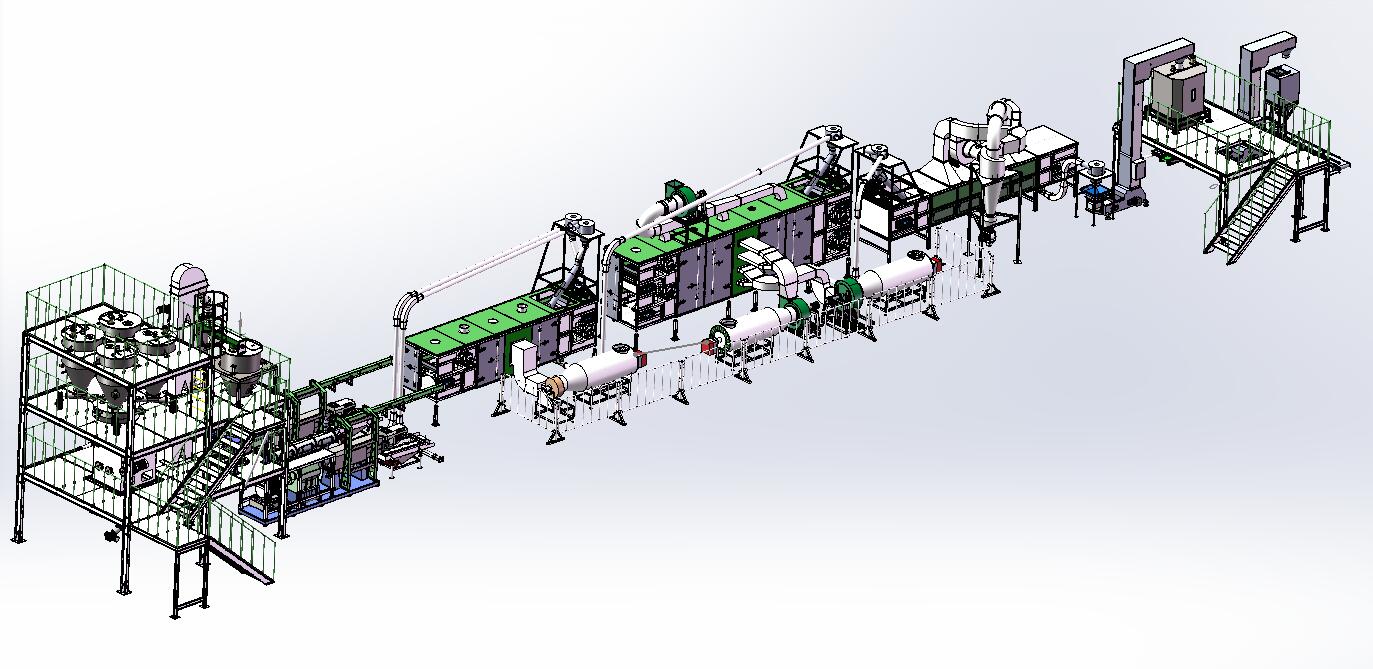 干燥:顆粒通過多層烤箱進(jìn)行干燥,溫度控制在0-200度之間,烘烤時(shí)間可根據(jù)速度調(diào)節(jié),以去除水分并增加保質(zhì)期