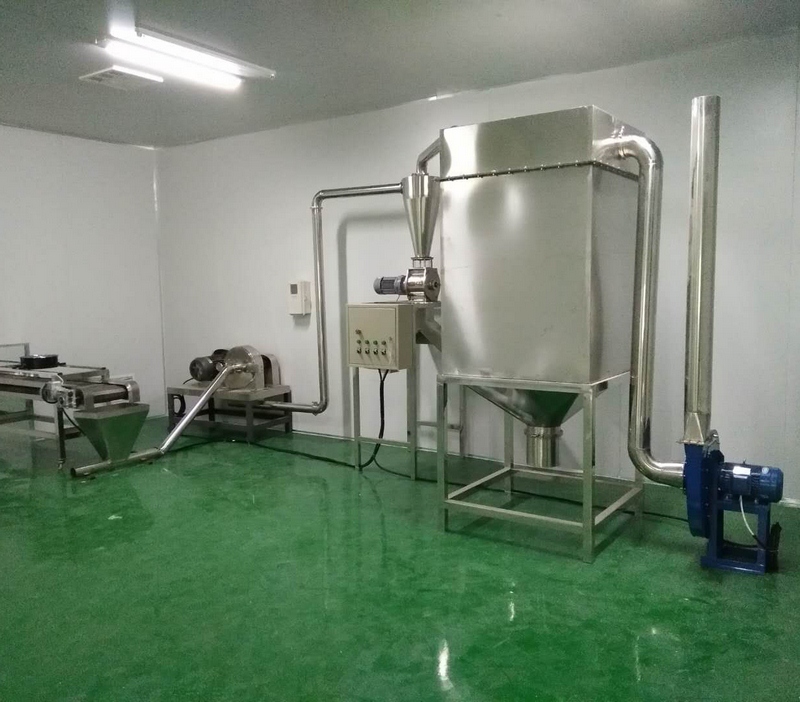 生產線構成:拌粉機→螺旋提料機→膨化主機→冷卻輸送機→除塵粉碎機