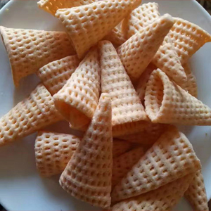油炸膨化小食品生產(chǎn)線可以生產(chǎn)鍋巴、薯?xiàng)l、薯片、尖角脆、比薩卷等產(chǎn)品。通過變換膨化機(jī)的磨具和成型切斷機(jī)即可生產(chǎn)多種形狀的產(chǎn)品,較為復(fù)雜的三維立體妙脆角、小魚、等產(chǎn)品需配合整形切斷設(shè)備,通過更換滾刀性狀可以實(shí)現(xiàn)加工不同形狀的產(chǎn)品