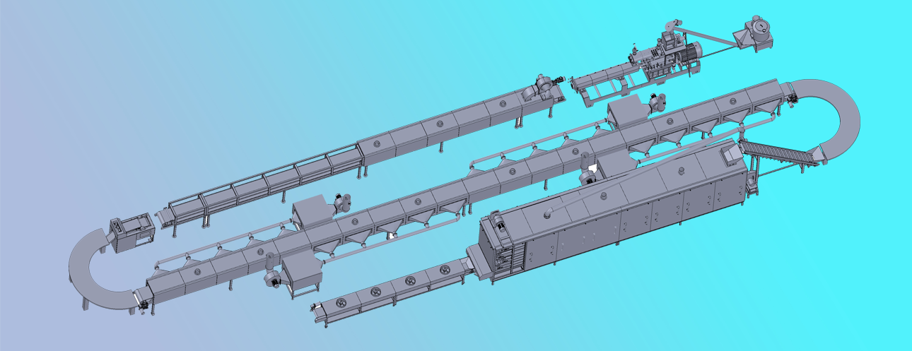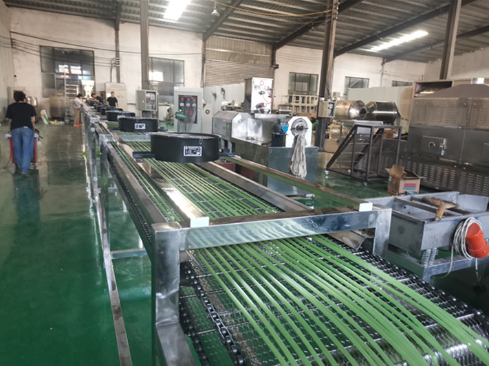 原料混合-擠壓熟化-定型干燥-切斷-一次干燥-二次干燥--冷卻-包裝